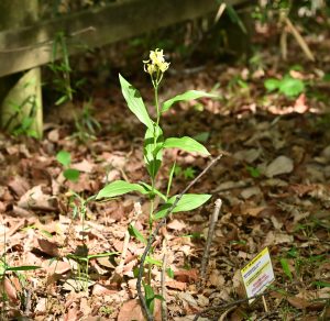 続いて、山を下って雑木林や湧水によって湿地になっている場所などを散策しました。道中では環境省絶滅危惧Ⅱ類に指定されているキンランをはじめ、ヤマツツジ、サワフタギなどの花が咲いており、参加者は観察したりスマホのカメラを向けたりして楽しみました。
