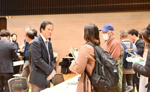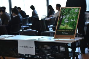 会場にはマッチングのブースも設けられ、森林文化協会も協会が取り組む「自然共生の森づくりプロジェクト」を紹介し、企業や団体関係者からの問い合わせに応じました。