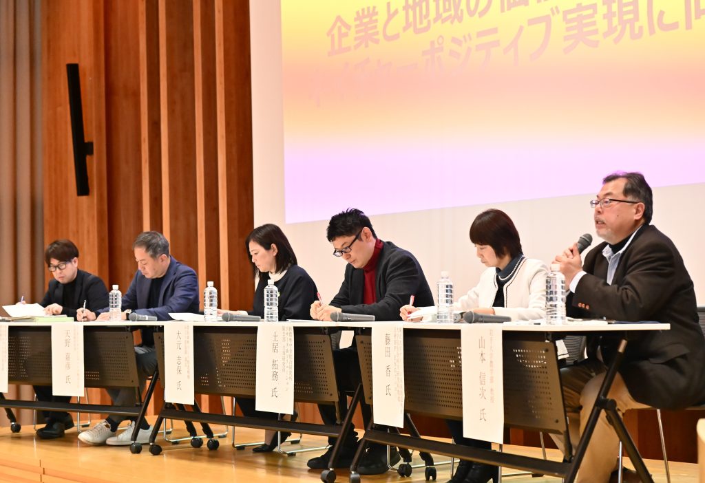 パネルディスカッションでは、徳島県での事例を踏まえながら、民間企業が事務局を務め、官民連携を進める意義などについてパネラーが意見を交わしました。コーディネーターは岩手大学農学部の山本信次教授が務めました。
