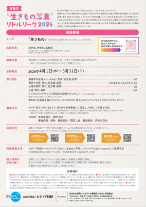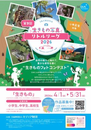 「第9回 生きもの写真リトルリーグ」は公益財団法人セディア財団が主催する生きものをテーマとした小中高校生向け写真コンテストです。生きものに興味を持つ全国の小中高校生から、作品を募集します。