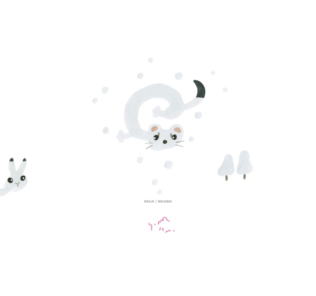 冬毛で真っ白のオコジョくん。