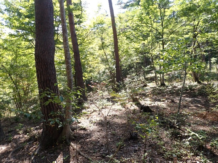 最大の特徴は、里山を再生して生物多様性を保全するという大きな目標の取り組みの一環として樹木葬を実施していることだ。一帯は2023年度に早々と国の「自然共生サイト」に認定され、住職の千坂げんぽう氏は久保川イーハトーブ自然再生協議会の顧問も務めている(写真2)。写真3は、隣接地の未整備の里山であり、写真4は間伐して整備した後の状況であり、その差は歴然としている。