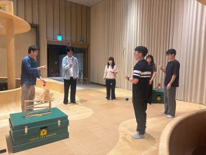 私は、福岡おもちゃ美術館にも韓国から多くのお客様が訪れていること、そして彼らも日本人の親子と同じように一緒に遊び、言葉が通じなくてもおもちゃ学芸員と楽しくコミュニケーションを取っていることを伝えました。大切なのは「雰囲気づくり」。親子で遊ぶ空気をつくり出せば、自然と同じように楽しんでくれるはずだと説明しました。運営会社の方々は翌日も視察に訪れ、ワークショップや親子のやり取り、スタッフの動きを熱心に観察していました。この経験が後のスタッフ教育に大きく活かされていることを、ソウルでの開催時に強く実感しました。