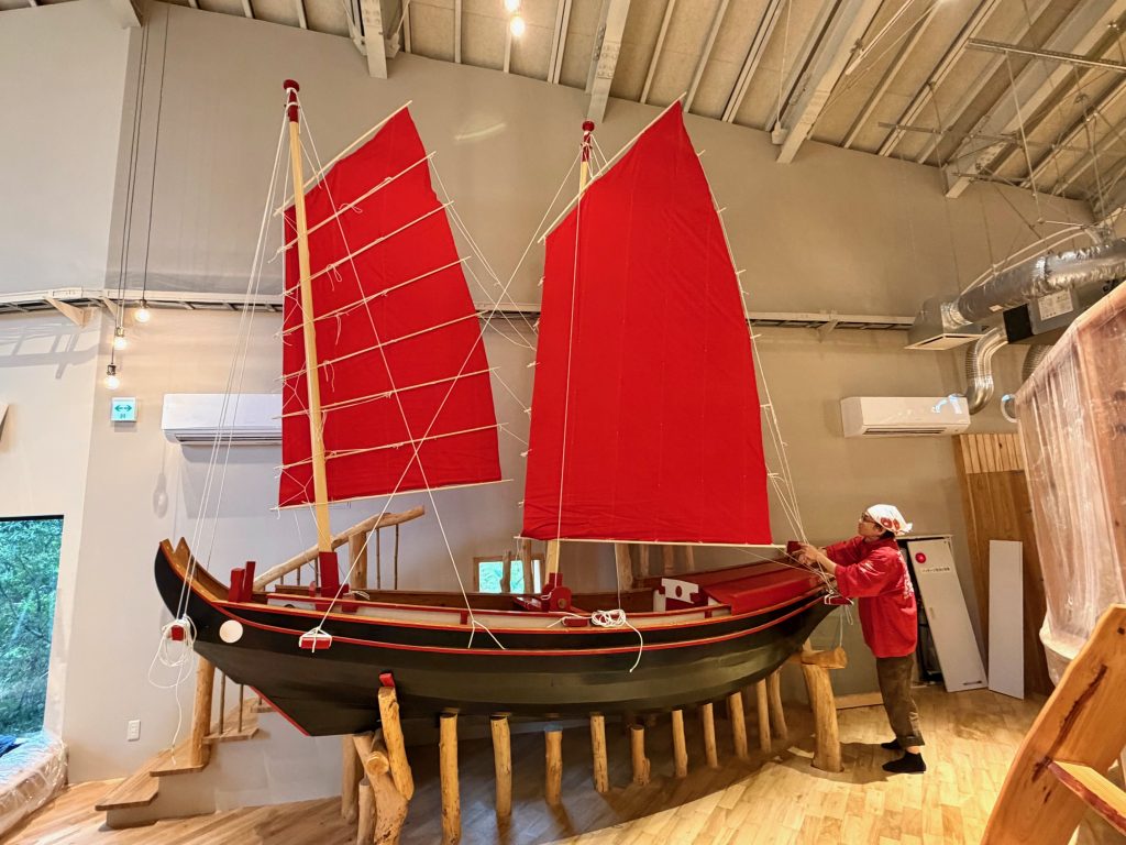 うるま市の越来造船4代目の手により建造された1/2サイズのやんばる船