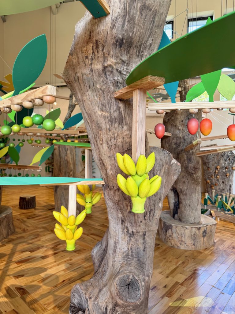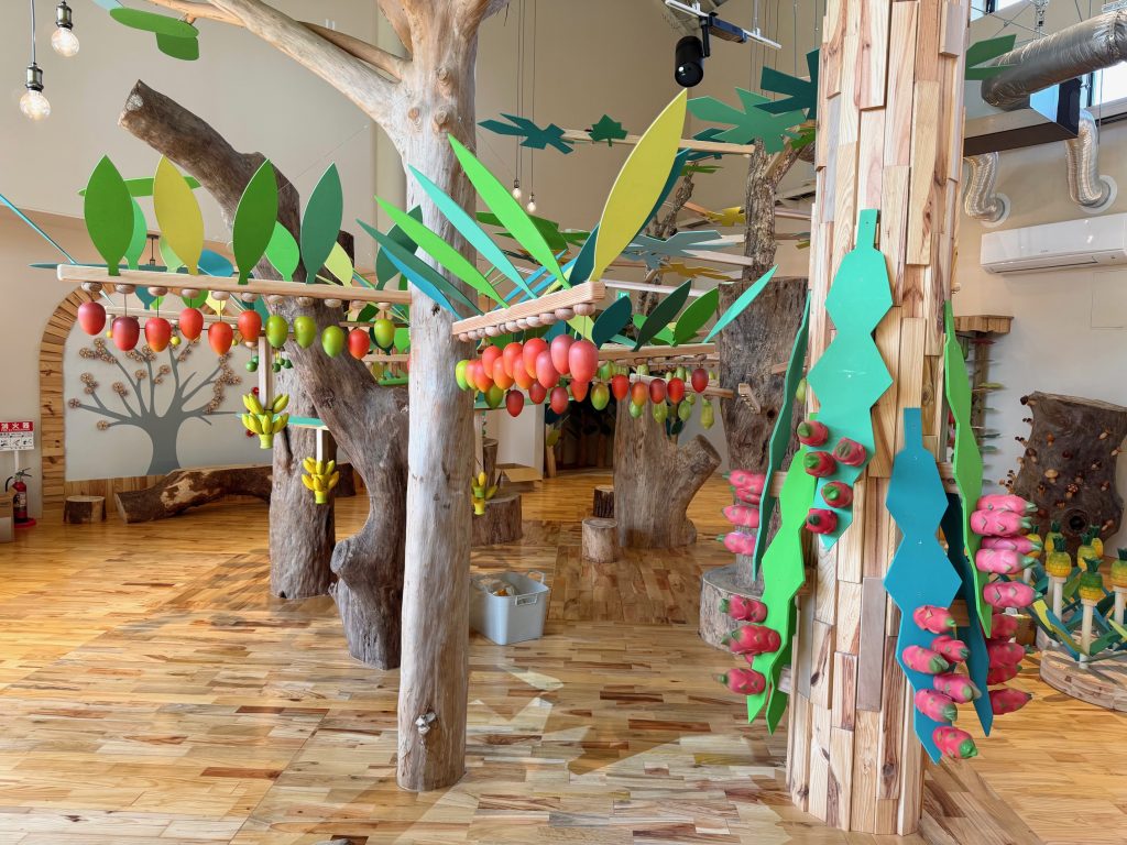今回の首里城再建時に出た端材で作った、2000ピースの積み木ごっこファームの野菜や果物もあり、遊びだけでなく文化を学ぶことができるのも大きな特徴です。